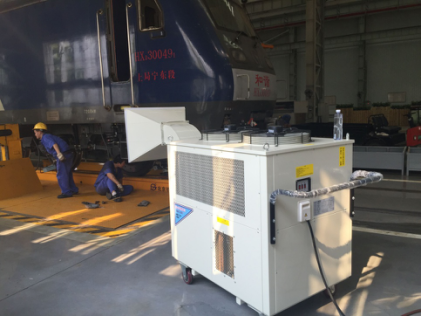 客户诉求: 火车头内部检修时机车必须断电,内部空调无法启动,所有降温设备都不能再内部使用,加上机车头内部空间小,相对密封,内部局域温度可以达到40度以上,严重影响工人工作效率,并引发了多起中暑事故。